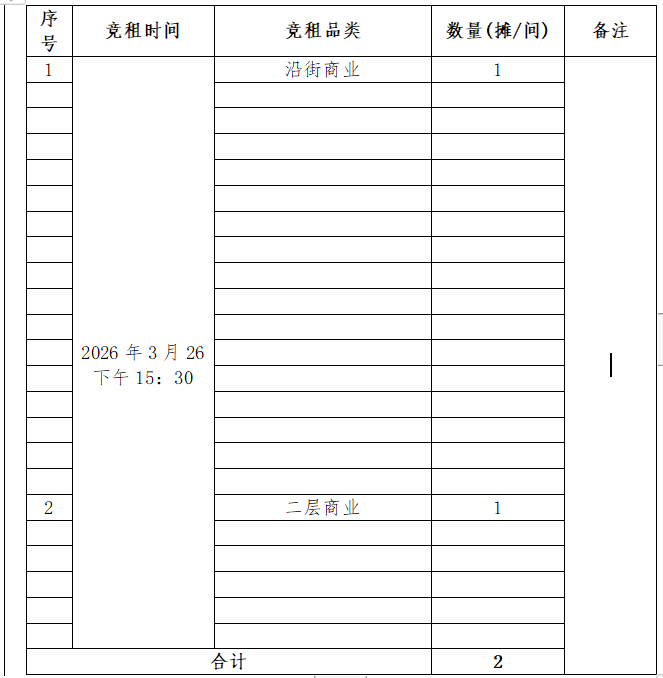 1.本次報名競租沿街商業(yè)、二層商業(yè),保證金為人民幣壹萬元整(¥10,000.00),本次報名競租以擬參與競租的標的物數(shù)量為基數(shù)繳交競租保證金,未足額繳交競租保證金的不得參與競租。